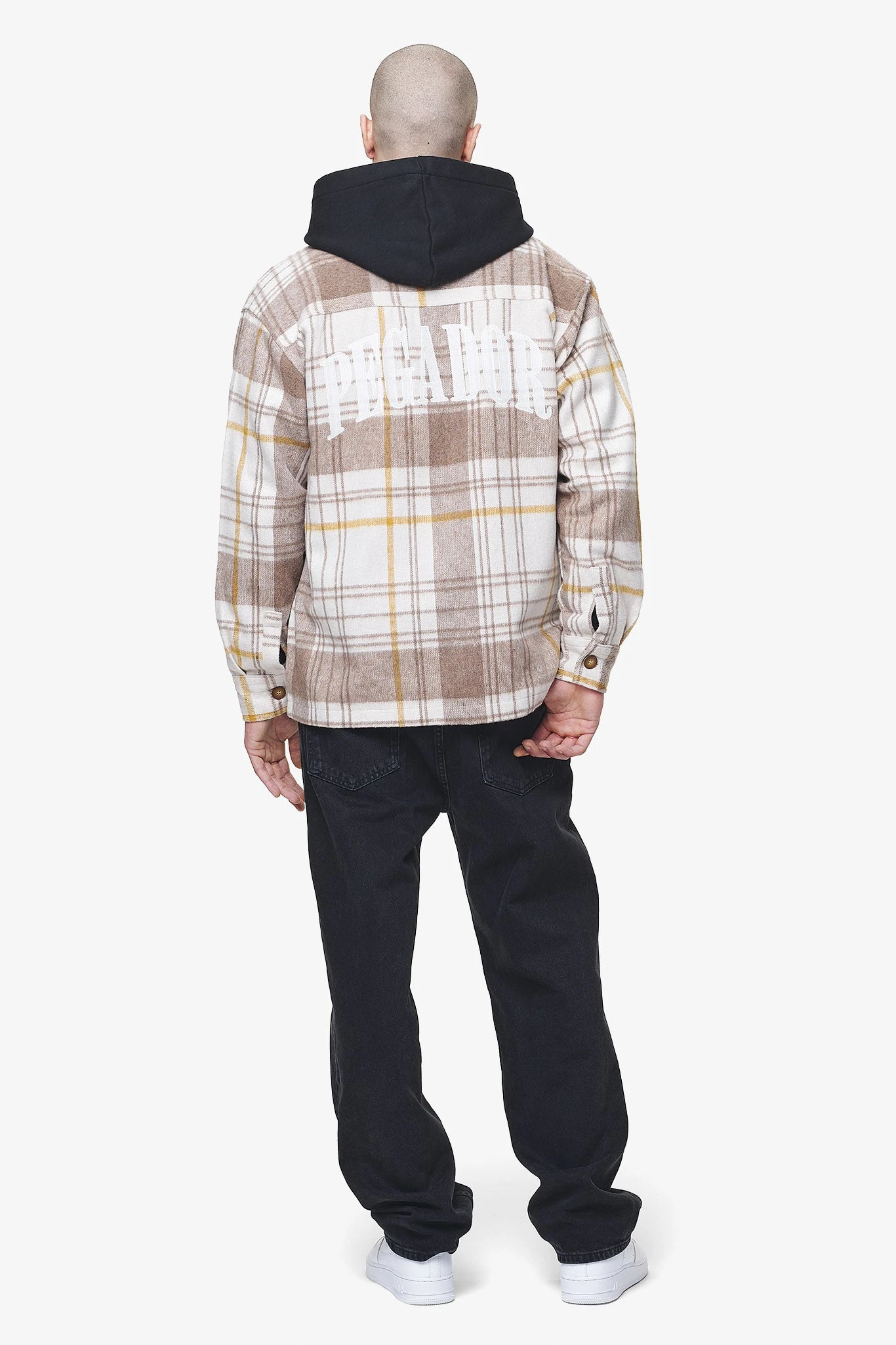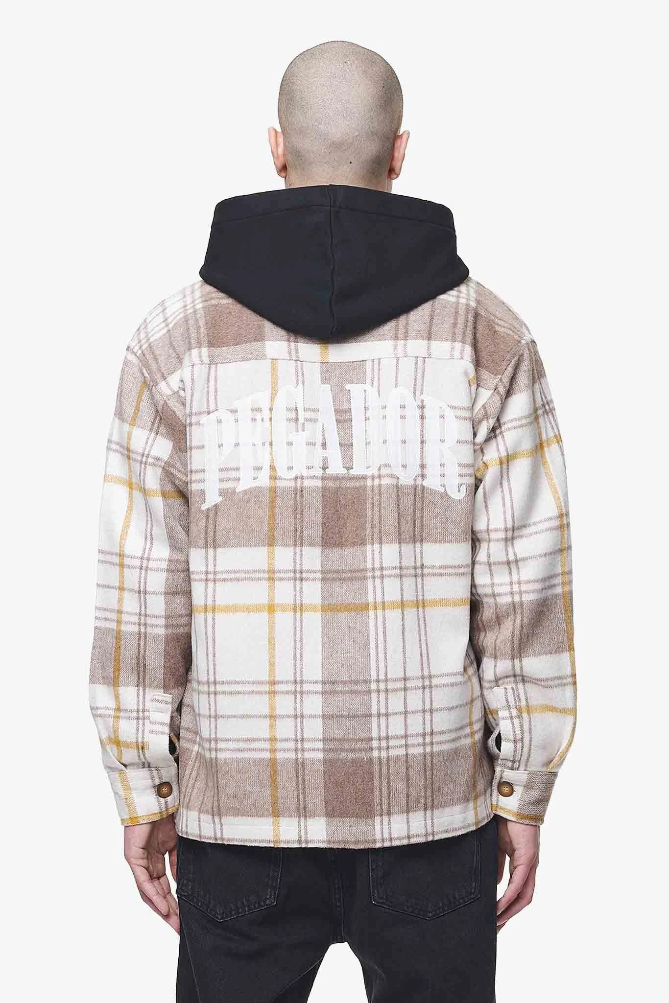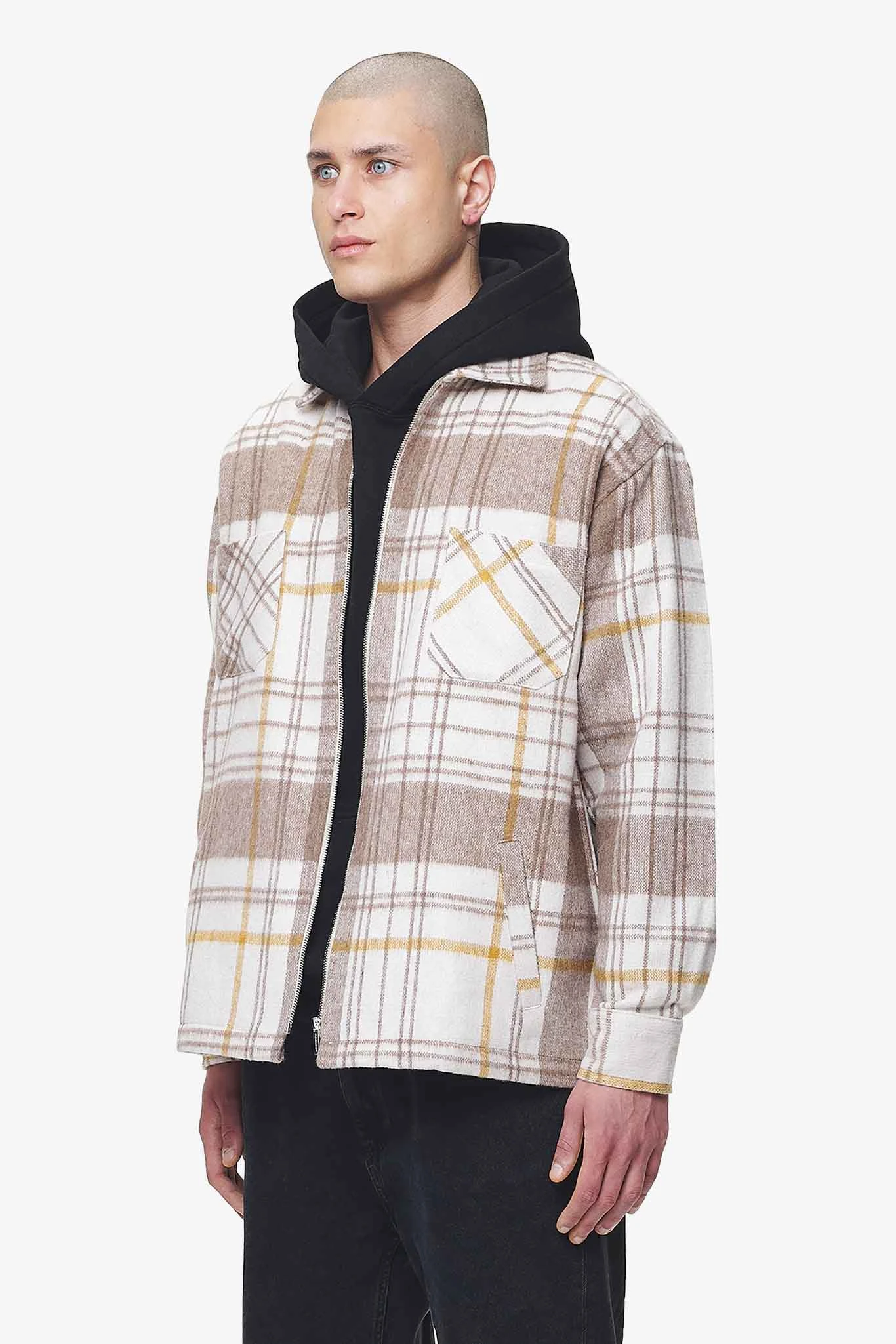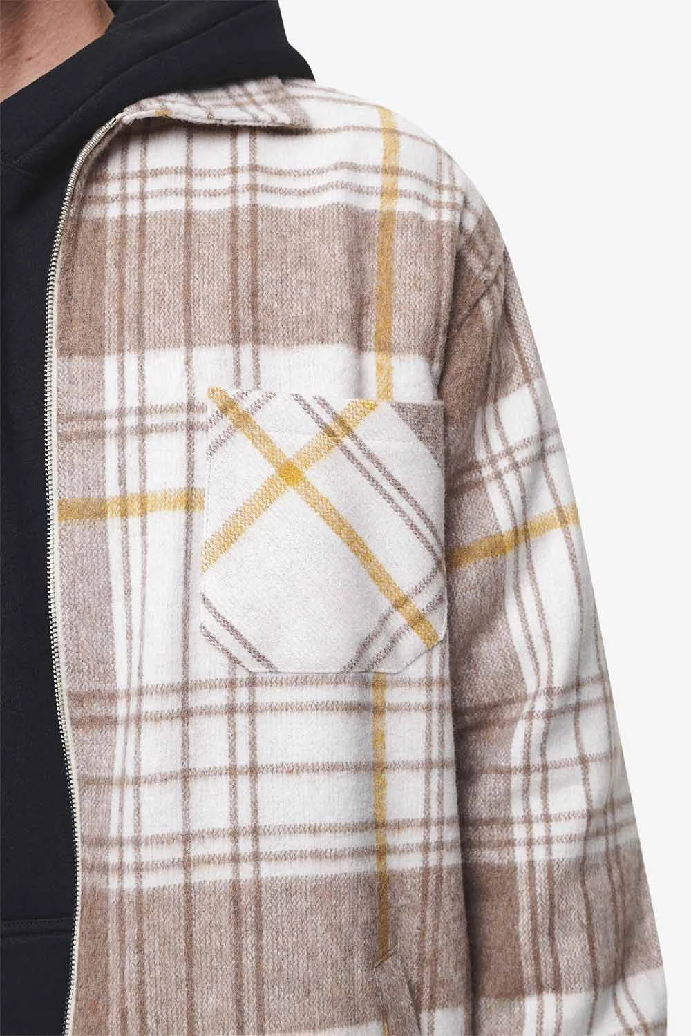 - cream/ wood heavy flannel zip shirt