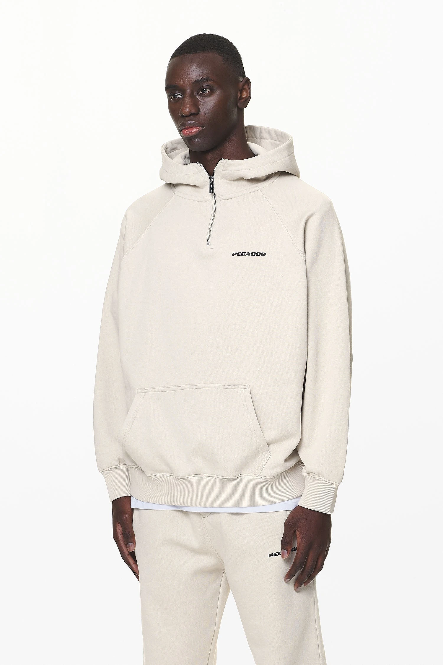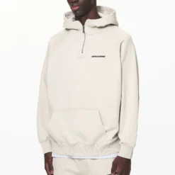 - washed dust cream halfzip hoodie