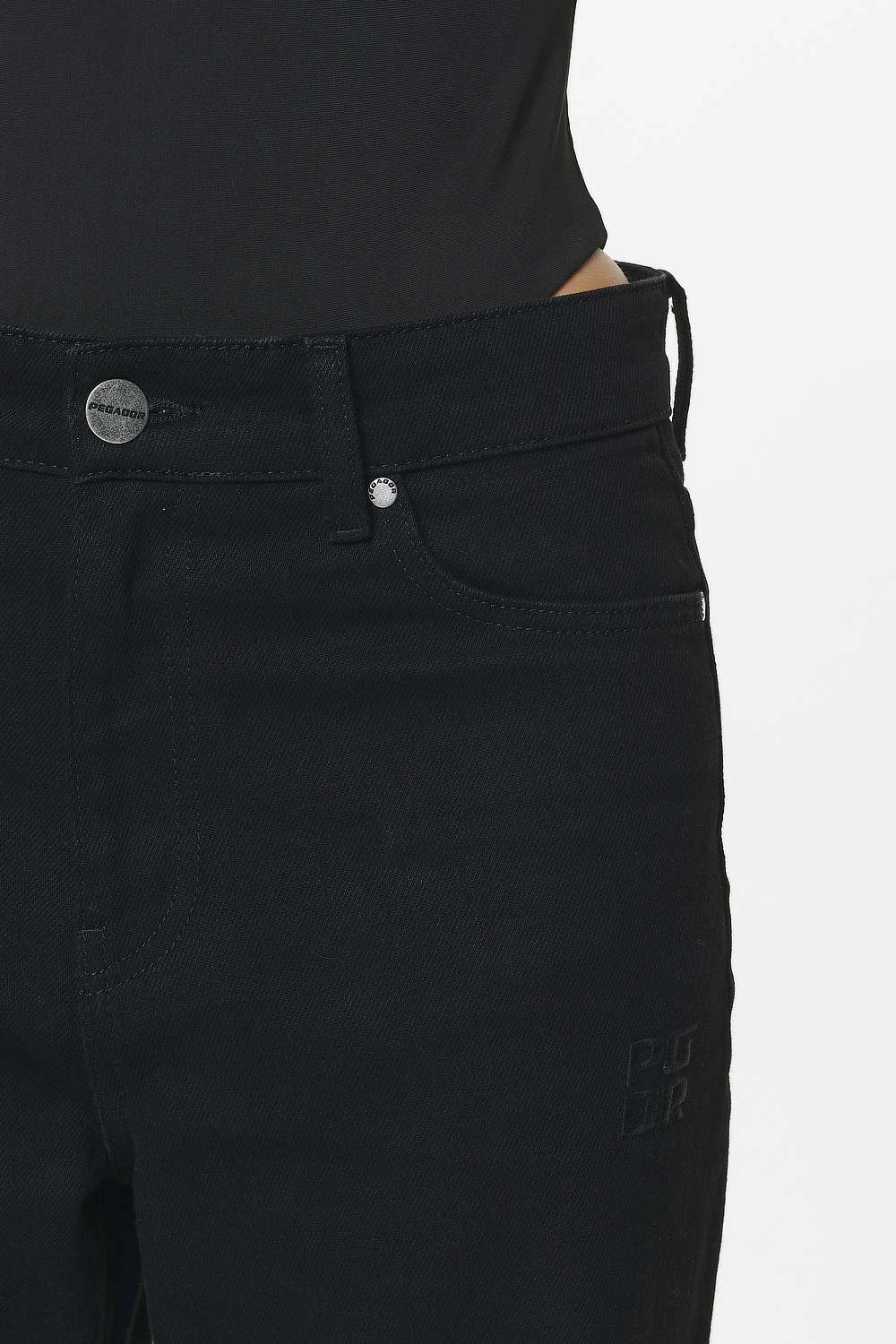 - black logo embroidery to the left leg