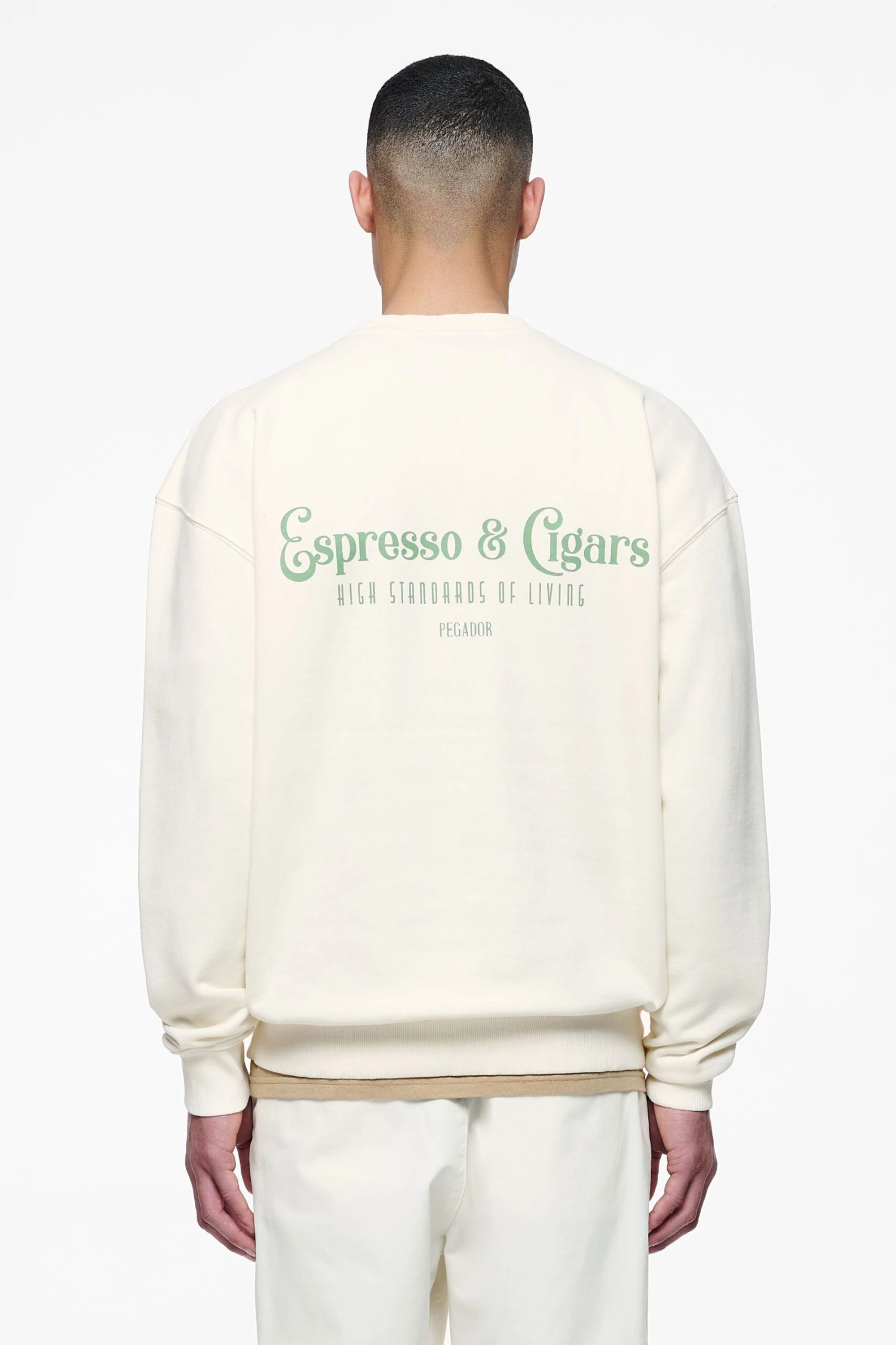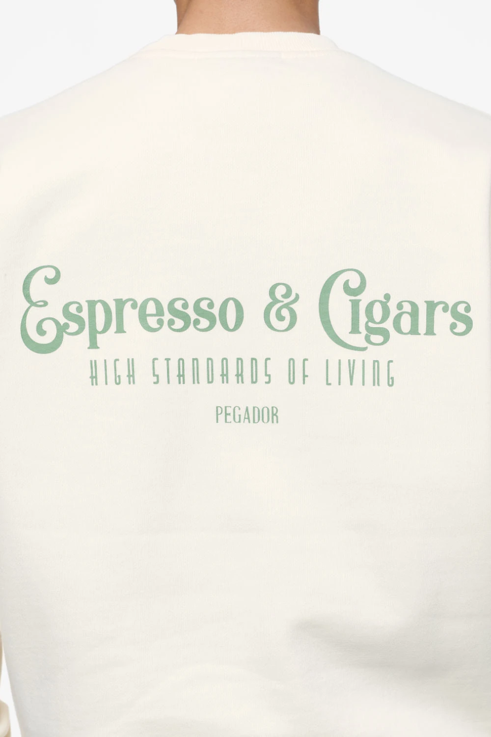 - cypress green ‘espresso & cigars’ print to the front and back
